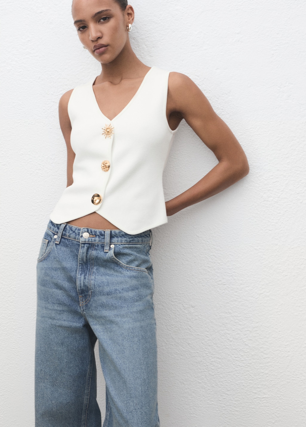 Gilet maille boutons bijoux Femme | MANGO France métropolitaine