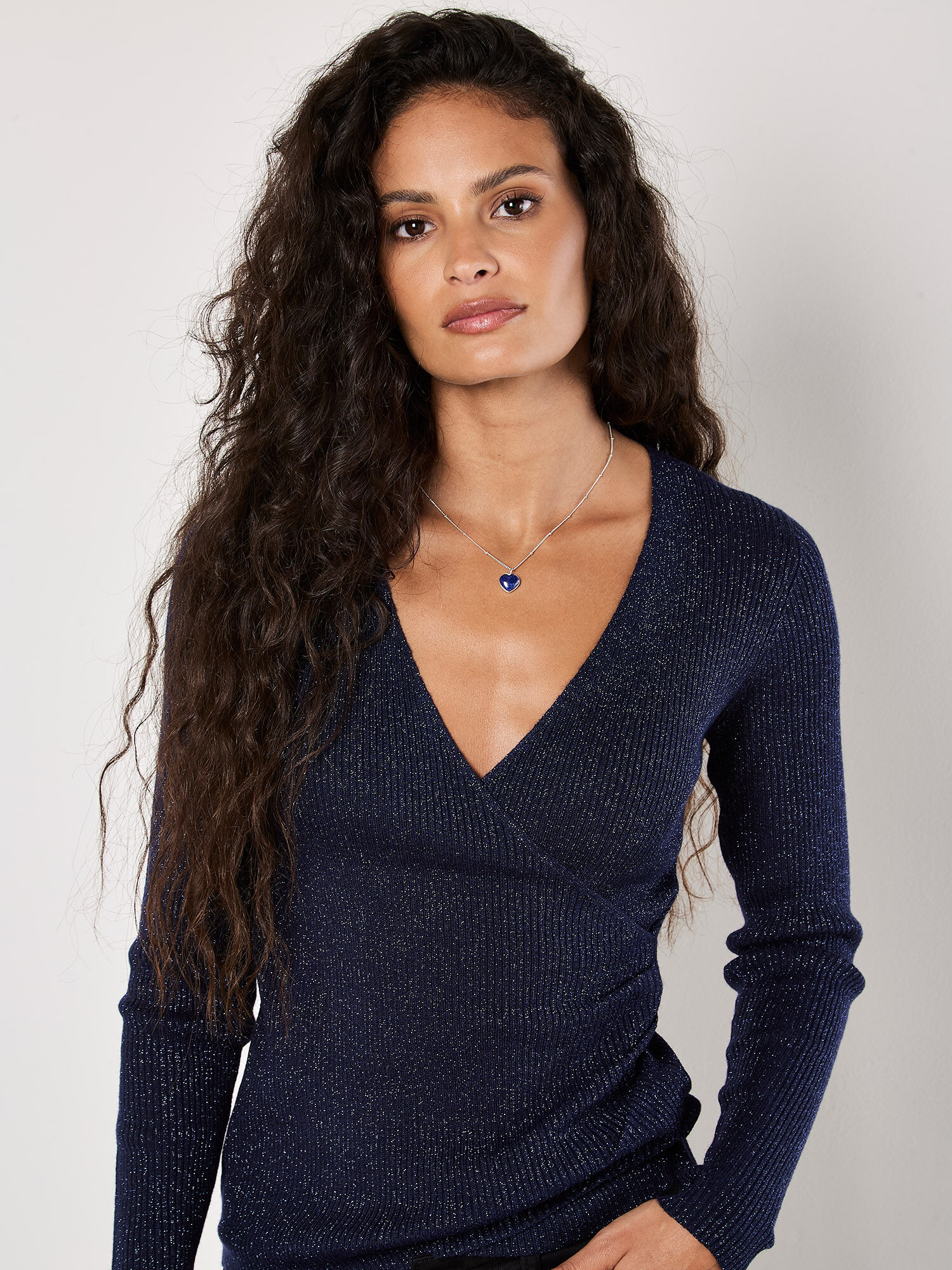 Pull cache cœur scintillant en maille côtelée | Apricot Clothing