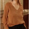 Pull manches longues, Col en V , Camel ,Femme | Vitrines de Colmar