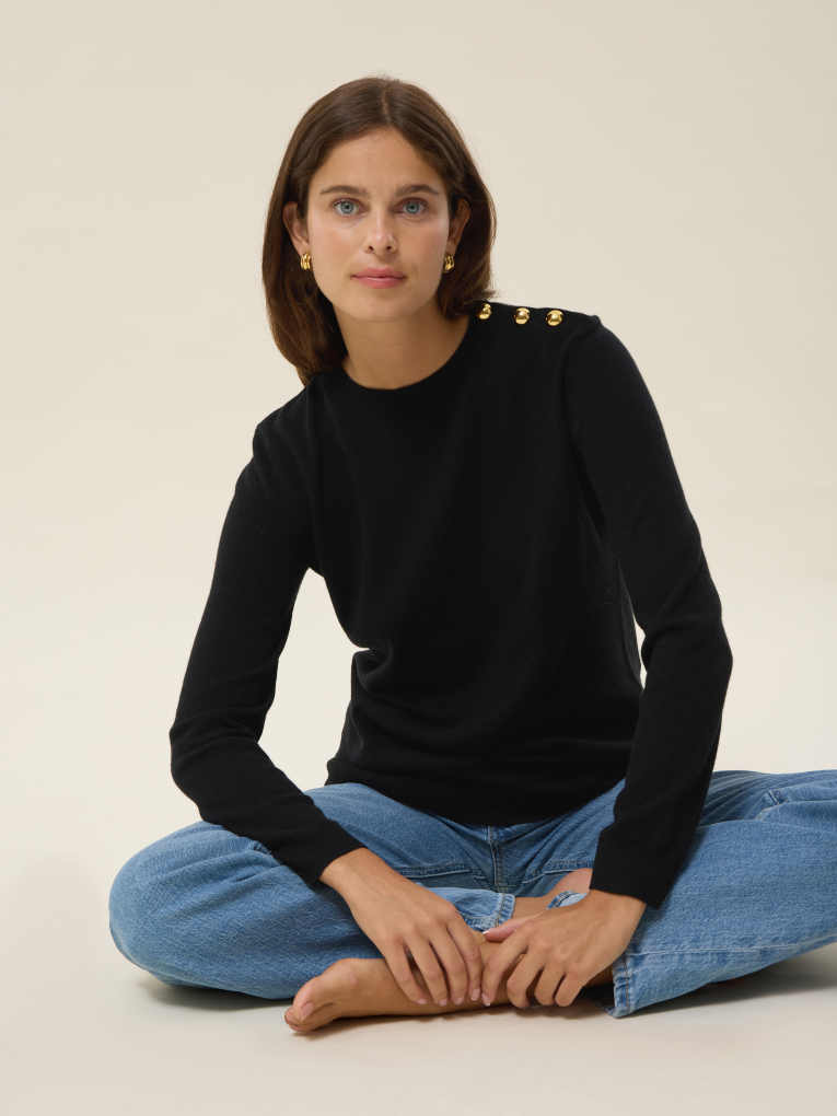 Gurvan Pull col rond en cachemire noir à boutons pour femme