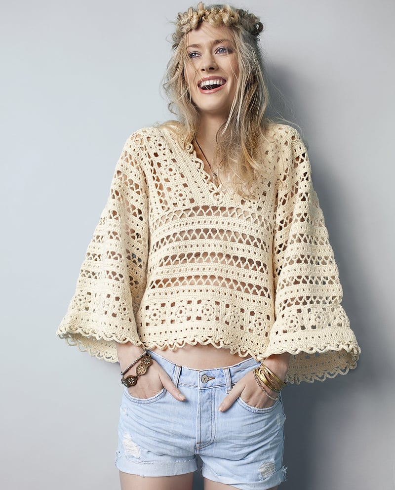 MODÈLE PULL CROCHET FEMME PHIL COTON 3 Pull • Phildar • Happywool