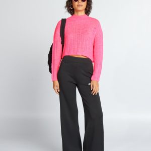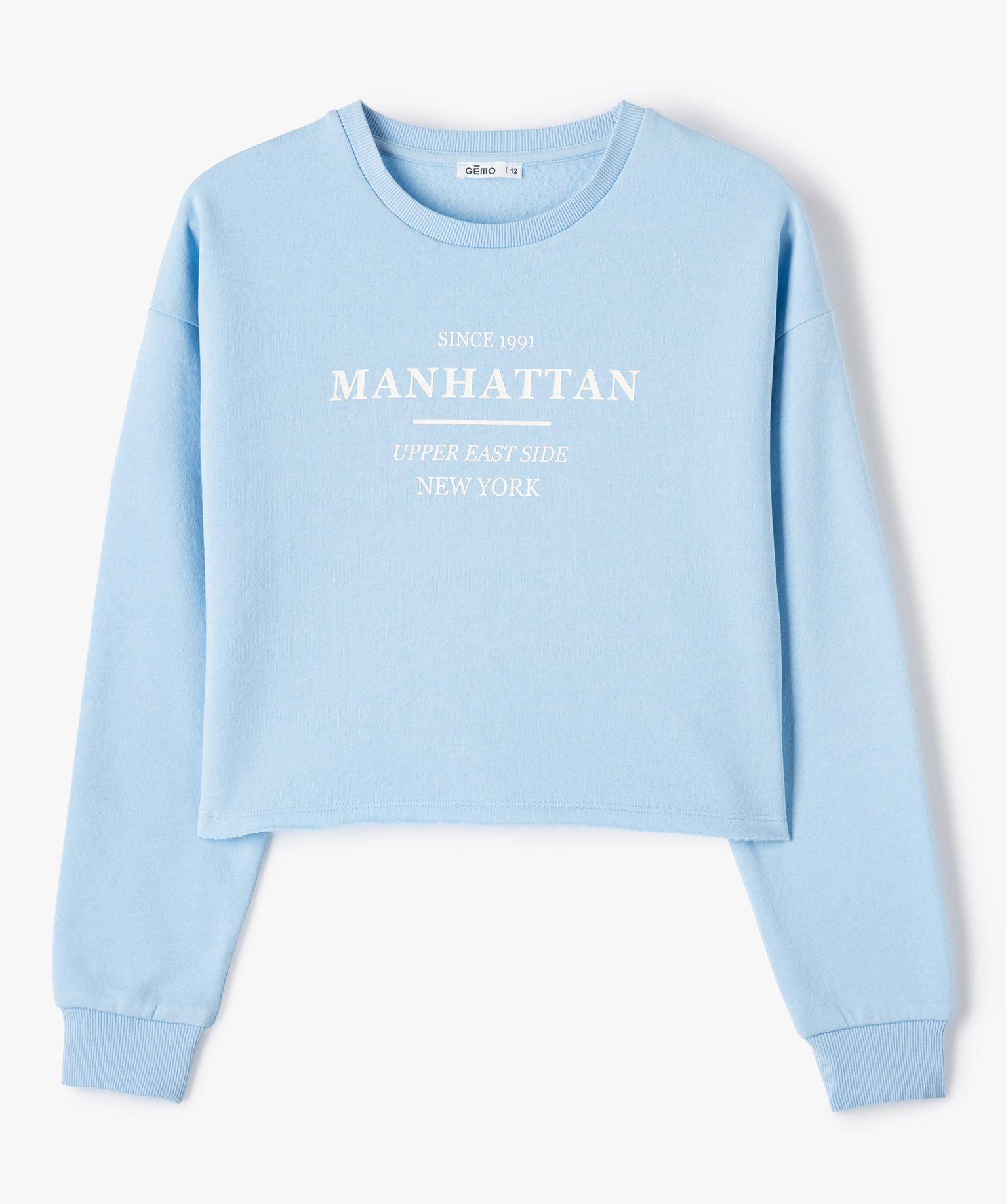 Sweat fille crop top en jersey molletonné imprimé bleu | GEMO