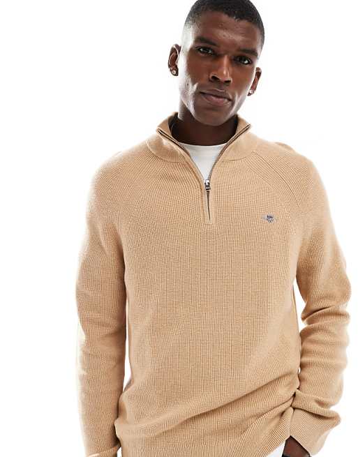 GANT Pull en maille de coton mélangé à col zippé avec logo Fauve | ASOS