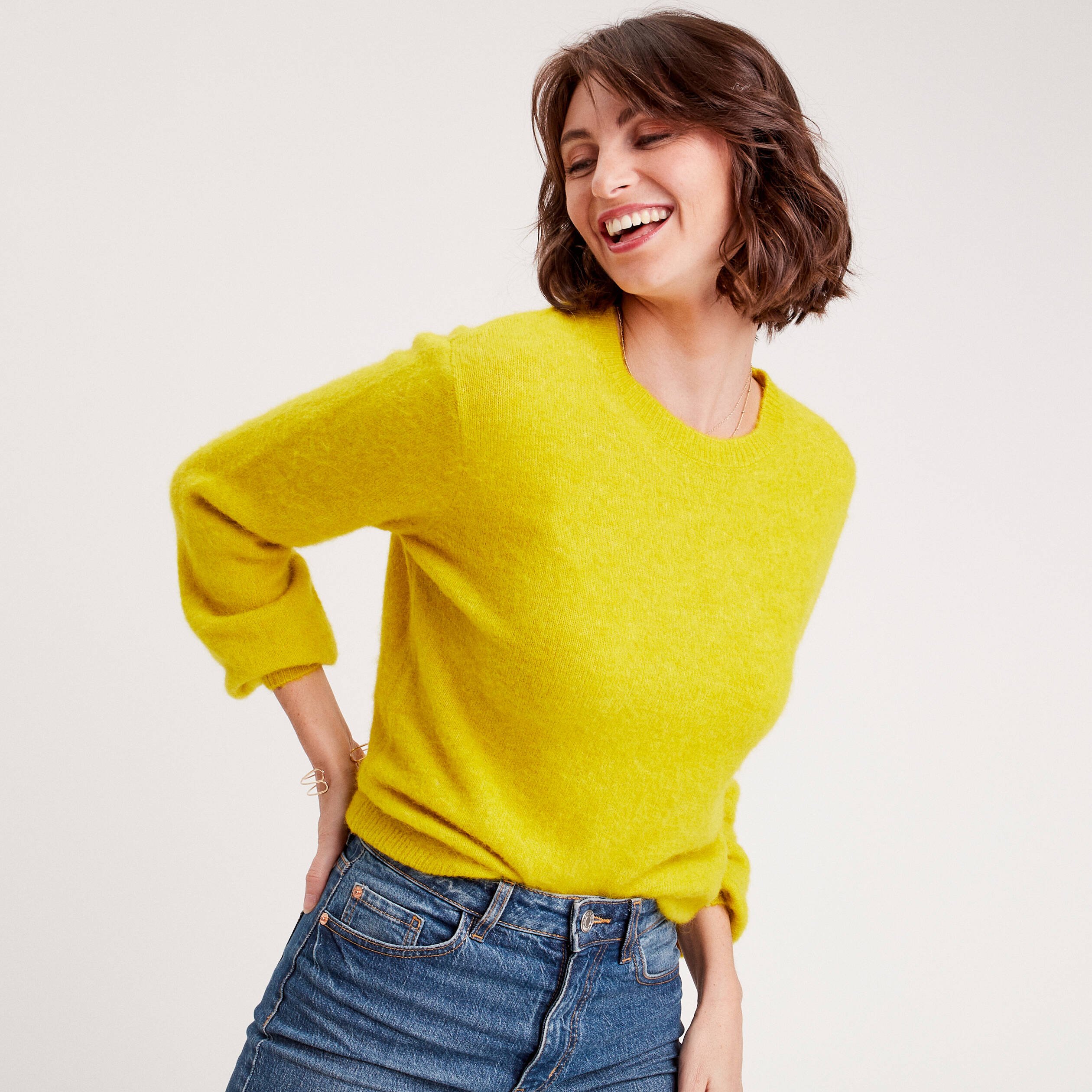 Pull avec col rond jaune or femme | Vibs