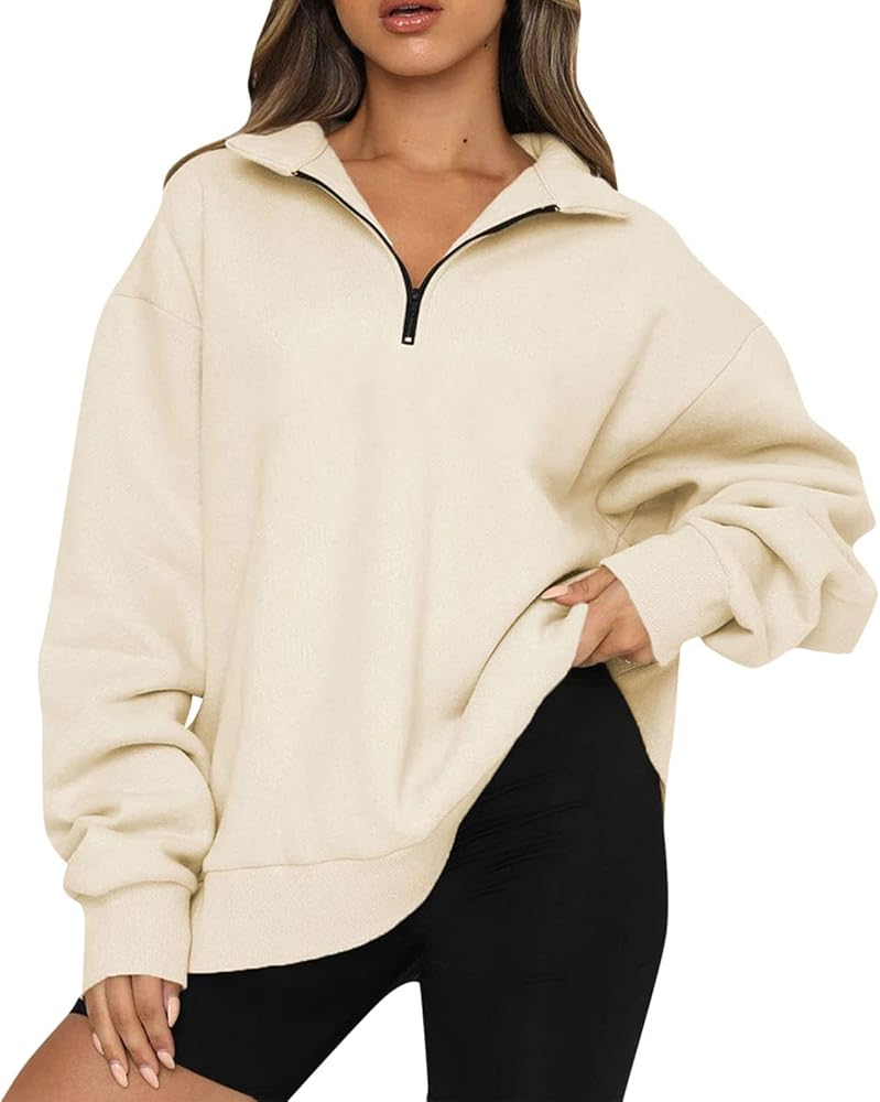 Sweat Capuche zippé Femmes surdimensionné Demi Fermeture éclair Pull à Manches Longues Sweat Zip à Capuche Pull Adolescentes Filles Automne Blouse …